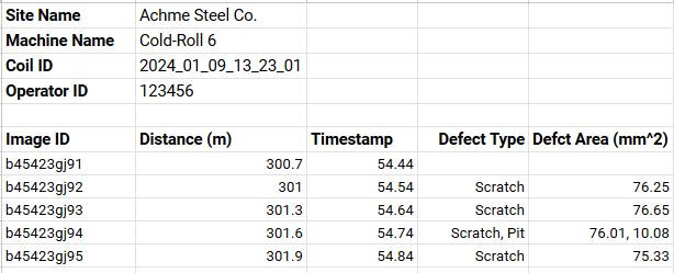 - Coil reports exported to common formats: CSV, pdf, excel, txt, etc.
